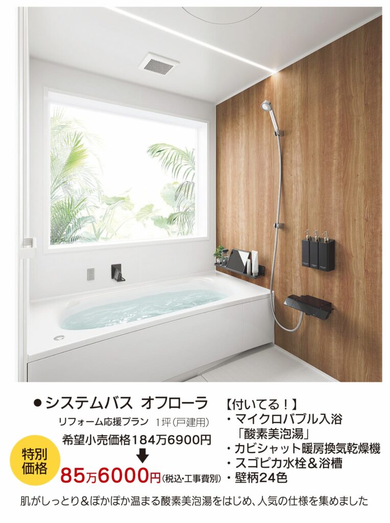 「酸素美泡湯」も「カビシャット暖房換気乾燥機」も付いている、ワンランクアップのシステムバス必見です!!