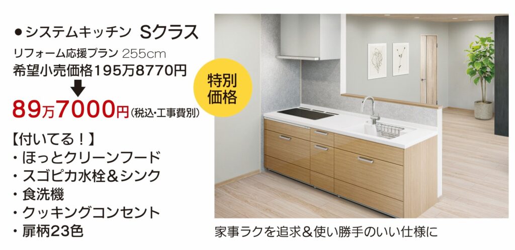 「ファンのお掃除が10年間不要のほっとクリーンフード」も「食器洗い乾燥機」も付いている、嬉しい家事ラクなキッチン!!