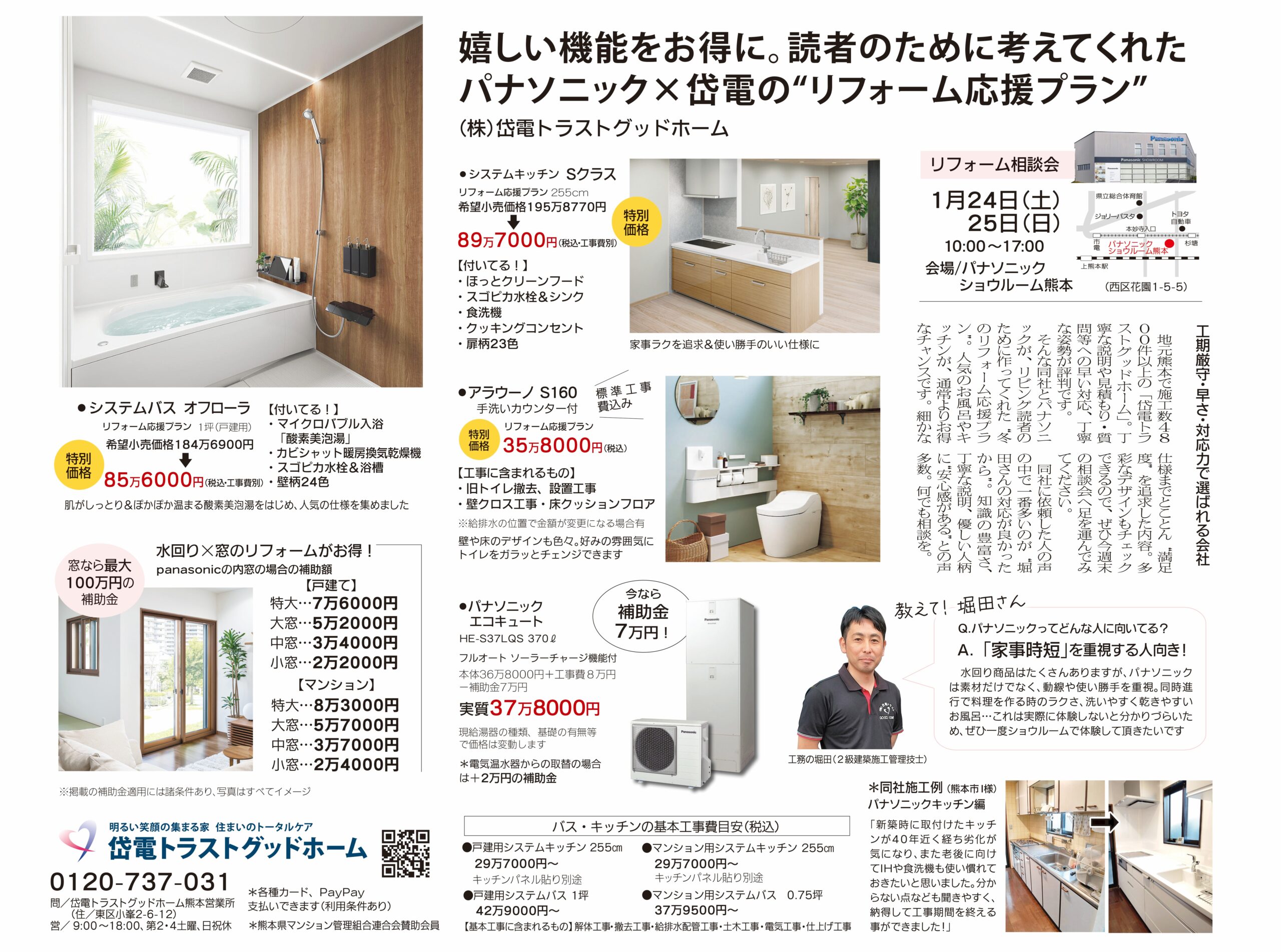 商品や工事内容、工事期間等についてお聞きになられたい方は、1月24日(土)・25日(日)、上熊本にありますパナソニックショウルーム熊本へ是非ご来場ください!