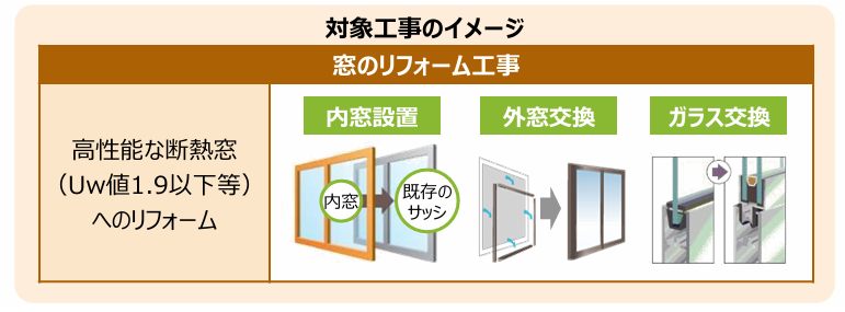 高い断熱性能を持つ窓への改修※に関する費用の一部を定額補助※※(上限100万円)(リフォーム事業者等が申請し、住宅所有者等に全額還元)