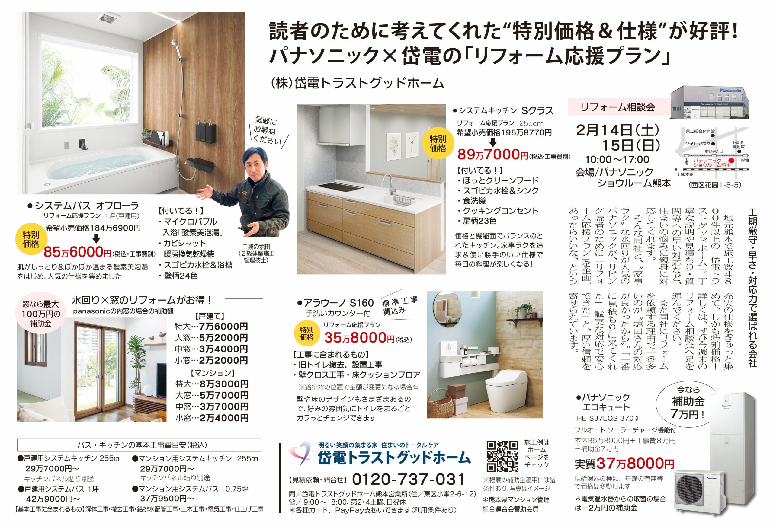 商品や工事内容、工事期間等についてお聞きになられたい方は、2月14日(土)・15日(日)、上熊本にありますパナソニックショウルーム熊本へ是非ご来場ください!