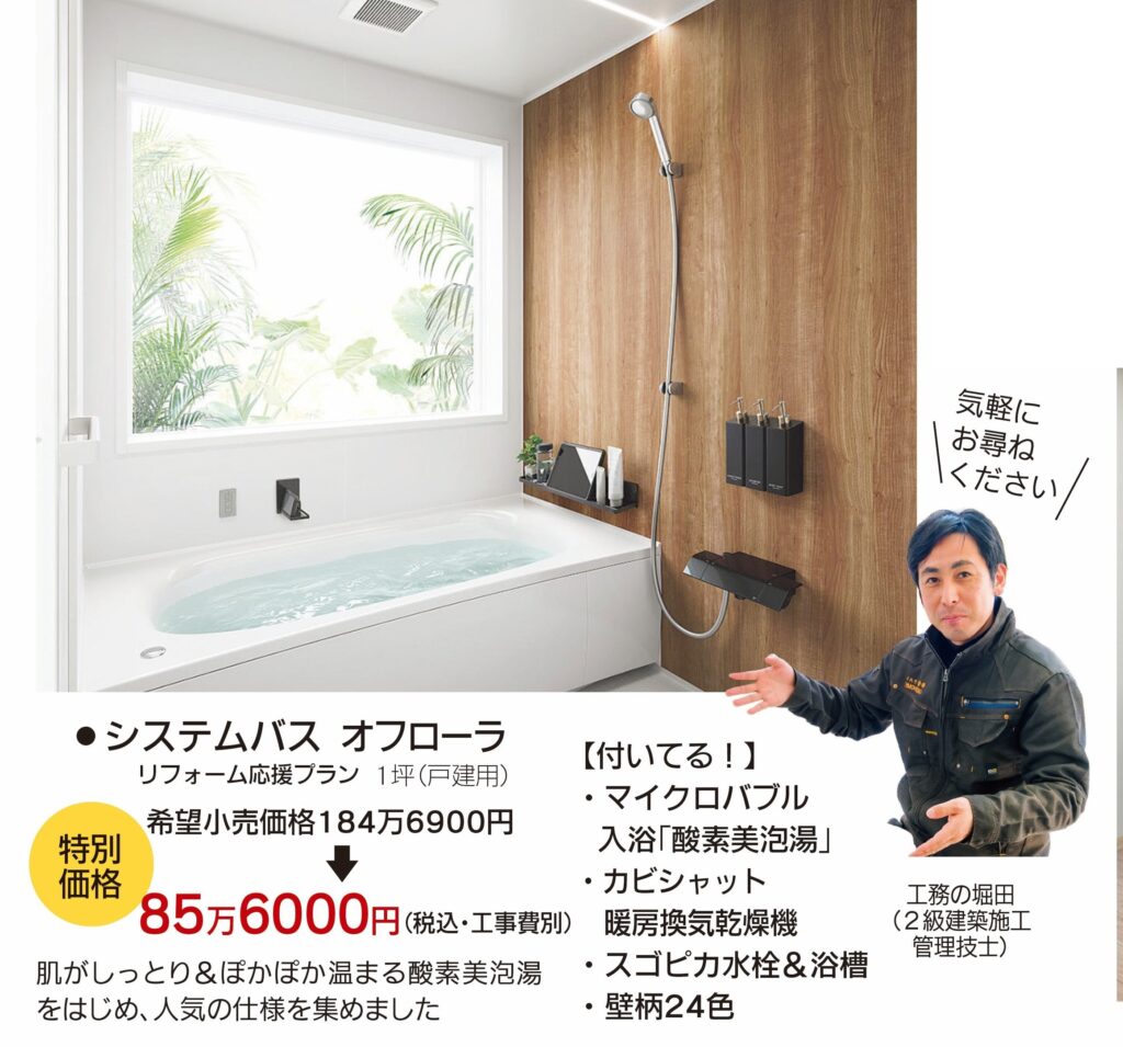 「酸素美泡湯」も「カビシャット暖房換気乾燥機」も付いている、ワンランクアップのシステムバス必見です!!