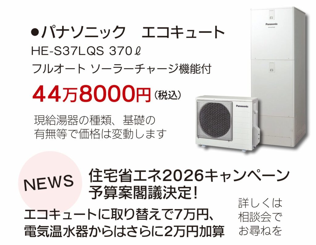 工事費込みのお得なトイレとエコキュートも必見です!!