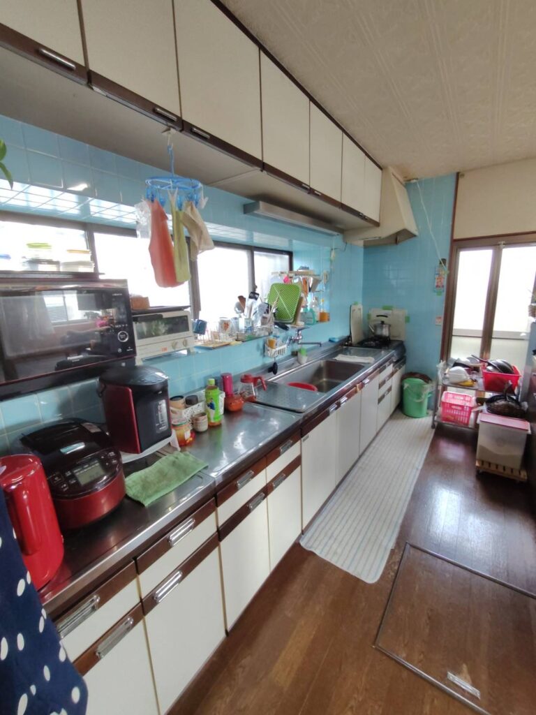築38年のキッチンで老朽化していること、キッチンの全面と側面のタイルの掃除が面倒なこと、キッチンの高さが低かったことなどを解消できるキッチンにしたいとの事。