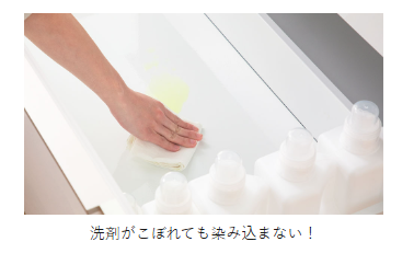 キャビネットの扉や外側、内側、底板、背面全てがホーロー製だから丈夫で長持ち。また水に強いので扉が湿気や経年劣化でめくれたり、はがれたりする心配もありません。