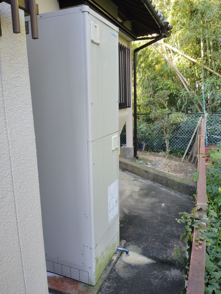 まず、大きな違いは、電気温水器は本体ユニットだけですが、エコキュートはエアコンの室外機の