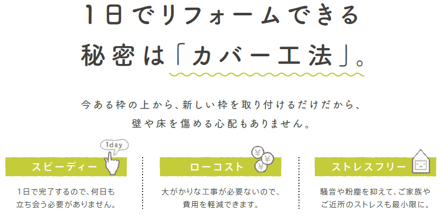 工事が短期間で済むので、費用も抑えることができてお手軽です。