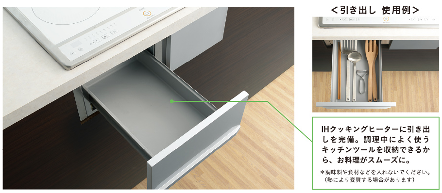 浮かす収納なら、物を動かさなくていいので、ワークトップの掃除もスムーズです。