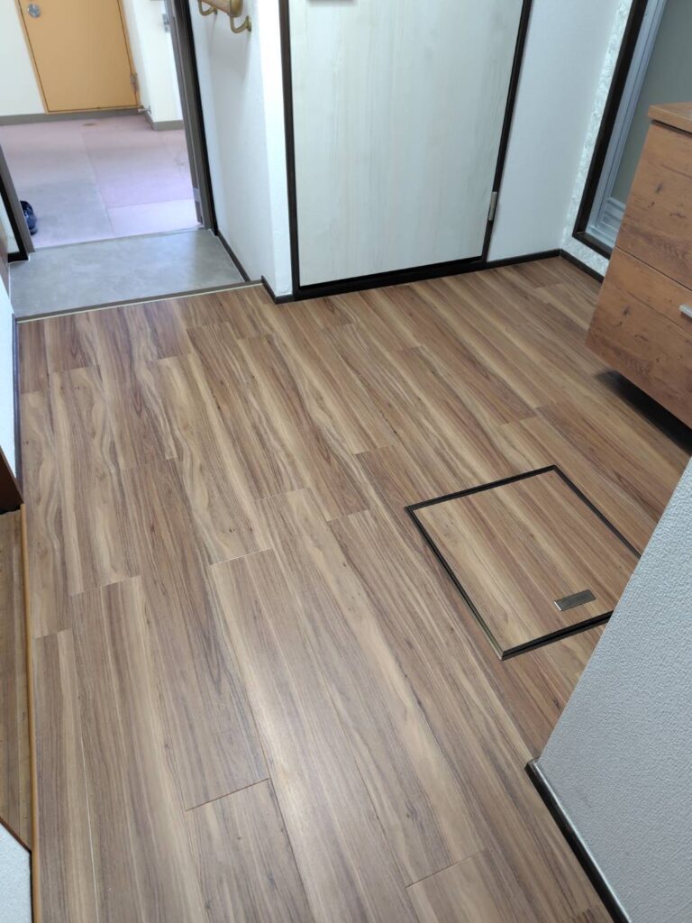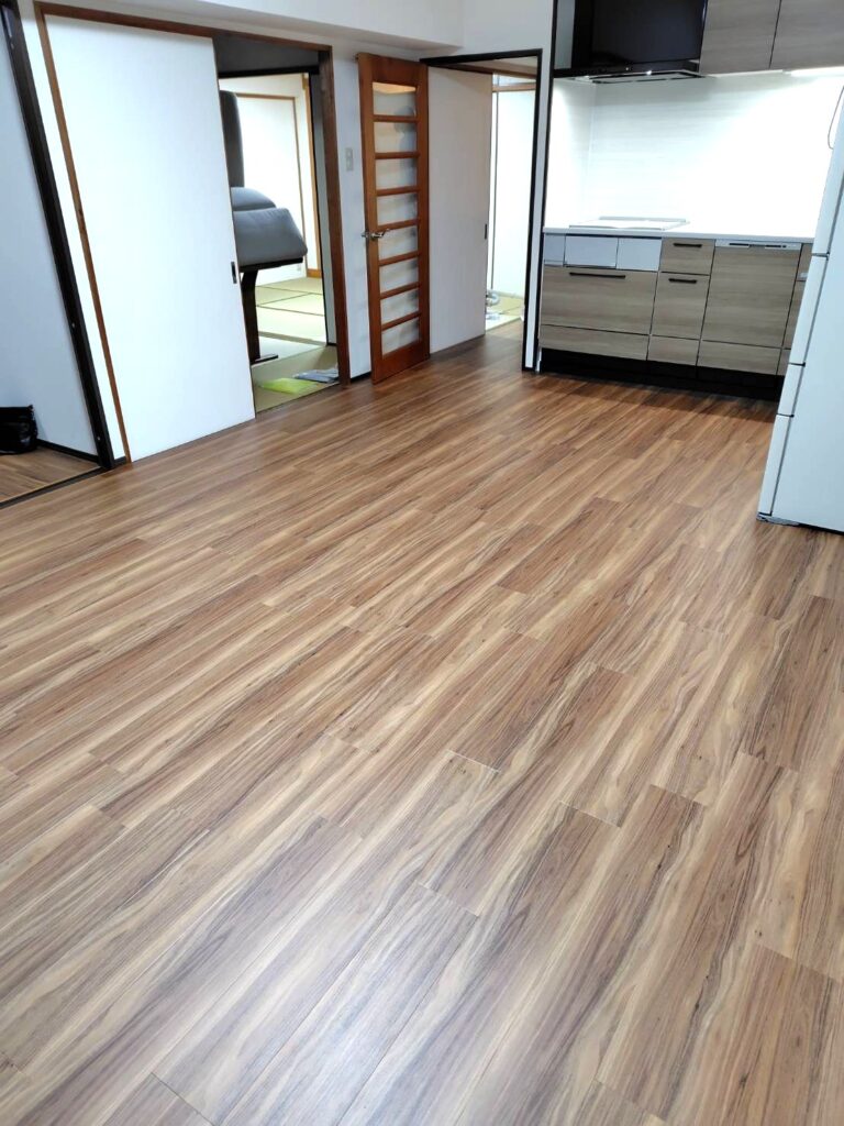 内装もご希望のデザインのフロアタイルに張り替えられ、とってもオシャレに仕上がりました!