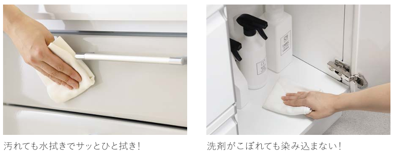また、水に強いので扉が湿気や経年劣化でめくれたりはげたりする心配もありません。