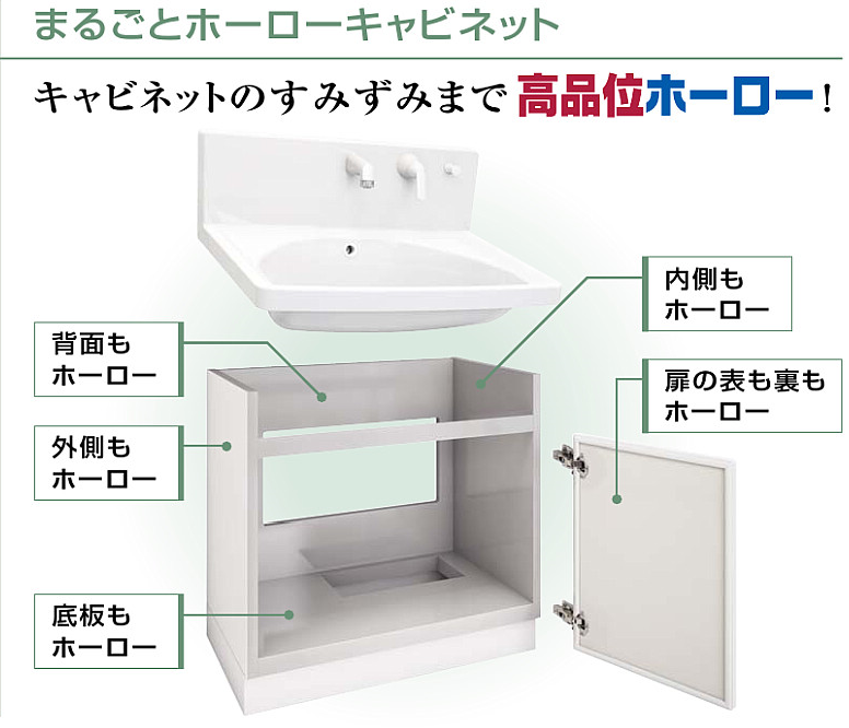 キャビネットの扉の外側、内側、底板、背面すべてがホーロー製だから丈夫で長持ち