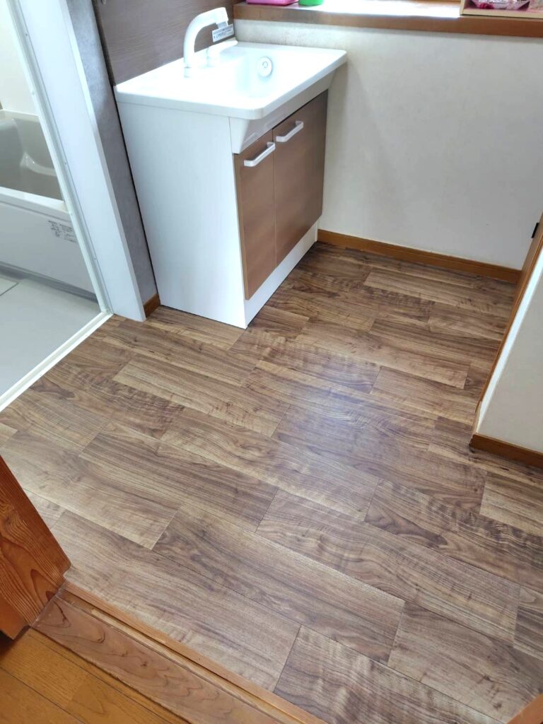 腐食が気になっていた脱衣室の床もきれいになり、浴室入り口も段差がなくなり、安心して入浴できるようになりました。
